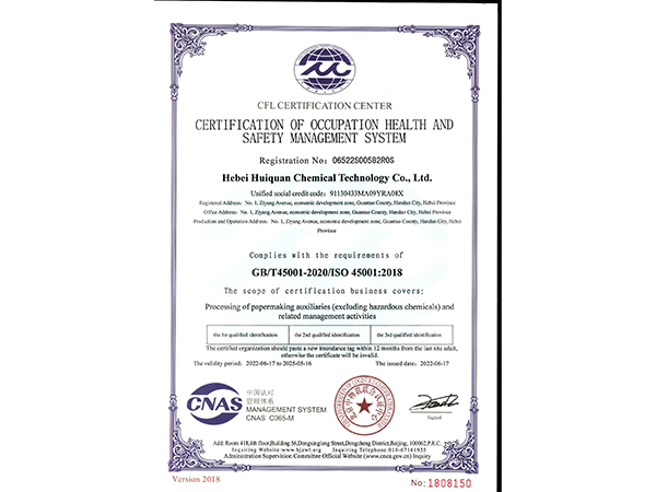職業健康安全管理體系認證證書(英文版)