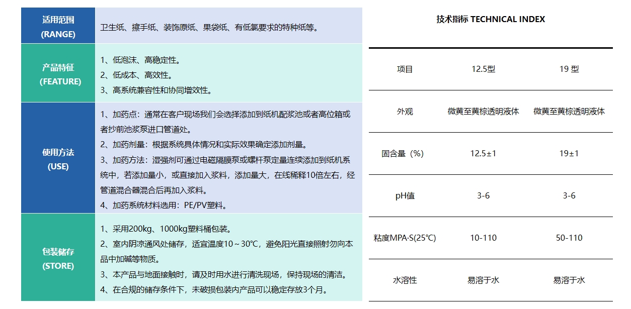 HQ-SN866 低氟濕強劑,是一種陽離子聚多胺酰胺環氧氯,丙烷樹脂,本品不但具有較好的濕強效果,而且環境污染小,無毒害作用。與傳統MF樹脂和UIF樹脂相比,它不僅可以在中堿性條件下熱化,而且在提高紙張濕強度的同時,并不會損失細張的柔軟性、吸收性,特別是生活用紙。